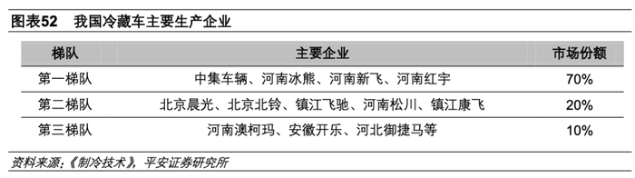 3)冷藏车和冷藏集装箱:合计市场空间约120亿元,中集集团占据绝对领先地位