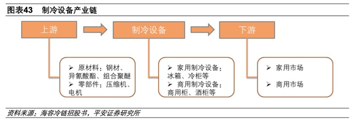 制冷设备上游竞争充分,下游商用领域仍有成长空间。制冷设备行业上游为原材料和零部件,下游为家用市场和商用市场。