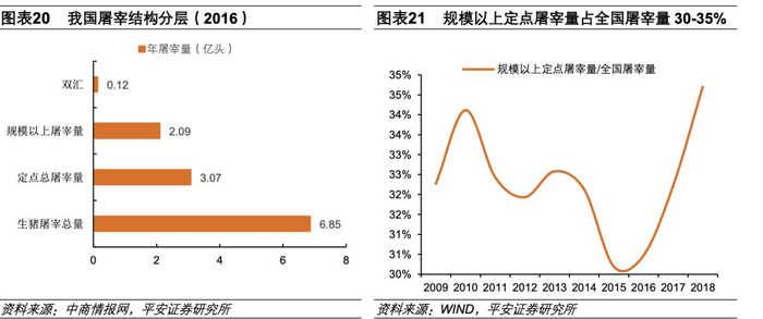 1) 从养殖-屠宰的流通看:后非瘟时代,政府加大力度清除私屠滥宰及不规范的小屠企,有利于加速大屠企对小场的横向整合。
