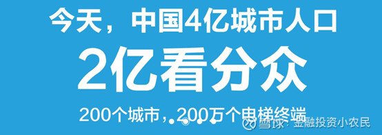 分众自己定义核心价值四个词:主流人群、必经、高频、低干扰。今天4亿城市人口,每天3亿看分众。现在的分众传媒覆盖230个城市(200个),260万个电梯终端(200万个),覆盖3亿城市人口(2亿),括号里面是去年的数字。