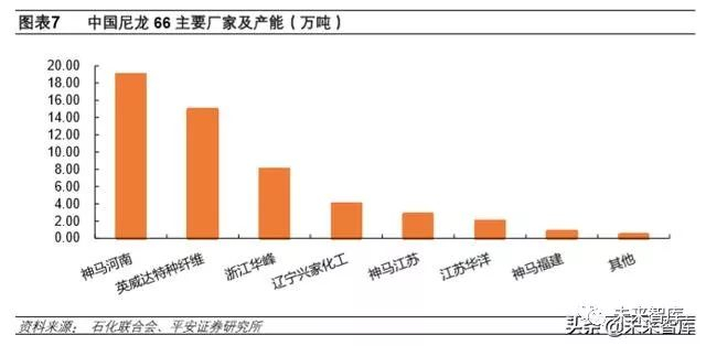 供应方面,神马工程塑料是我国尼龙 66 最大的生产厂家,其中河南神马产能 19 万吨,江苏神马产 能 2.8 万吨,福建神马产能 0.4 万吨,三地合计产能 22.2 万吨,约占全国产能的 42.7%;英威达上 海特种纤维产能 15 万吨,约占全国产能的 28.8%,其余还有浙江华峰、辽宁兴家化工(鞍山国锐) 等厂家。