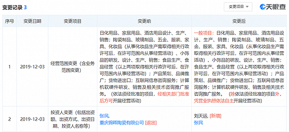 界面重庆注意到,事发后,集创家科技有限公司的股权信息发生变更。天眼查显示,12月3日,重庆锦晖陶瓷退出集创家,刘天运新增入股成为二股东。