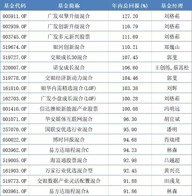 就拿这次包揽前三名的广发基金经理刘格菘来说,他管理的广发创新升级混合基金前十大重仓股是这样的: