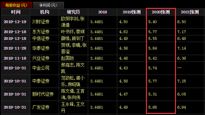 今天中信证券发研报预测,五粮液2020年收入增速为15%-20%。看五粮液的历史业绩数据可以发现,净利润增速一般比营收增速高5%左右,所以五粮液差不多明年净利润增速为20%-25%。我们折中一下取22.5%。