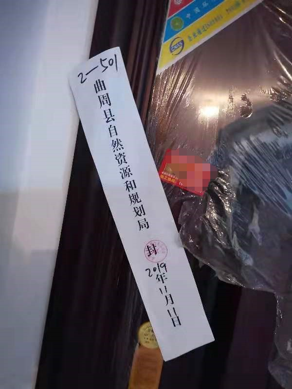 11月11日,曲周县自然资源和规划局逐户在门上贴上封条。 受访者供图