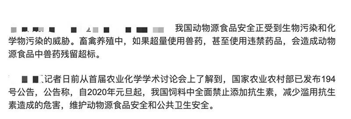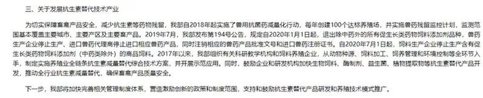 但农业农村部官网发布的第194号公告中只提出“停止生产、进口、经营、使用部分药物饲料添加剂”,通篇公告并没有出现“全面禁止添加抗生素”的字样。