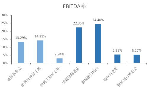 ▼澳博和银娱各娱乐场2018年EBITDA率对比