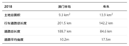 政府的导向和投资使得路氹城填海面积迅速扩大,基建项目迅速增加,1999年至2018年基建指标中,氹仔道路的年复合增长率为2.2%,而澳门半岛的道路长度年复合增长率仅为0.6%。
