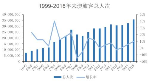 ▼ 澳门旅游总人数连续19年高速增长