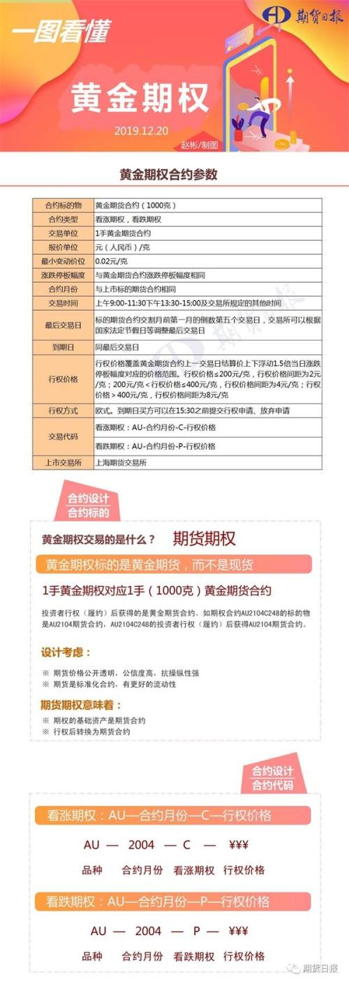 黄金期权今日(2019年12月20日)上市交易,这是我国第一个上市交易的贵金属商品期权,其上市丰富了黄金的投资手段,有利于完善企业风险管理水平,也能够提高我国黄金市场的国际影响力。