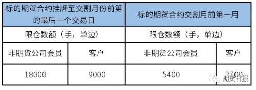 期权合约和期货合约分开限仓。非期货公司会员和客户持有的某月份期权合约所有看涨期权的买持仓量和看跌期权的卖持仓量之和、看跌期权的买持仓量和看涨期权的卖持仓量之和,分别不得超过下表所示的持仓限额。具有实际控制关系的账户按照同一账户管理。
