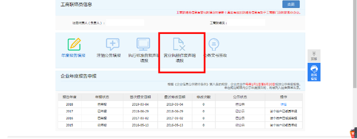 若企业显示“正在进行营业执照作废声明”,则说明已公示成功。