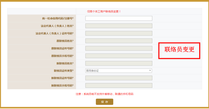 点击红框后根据营业执照信息和实际情况填写保存即可。联络员首选经营者本人。