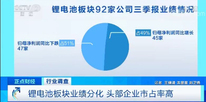 锂电池板块业绩分化 头部企业市占率高