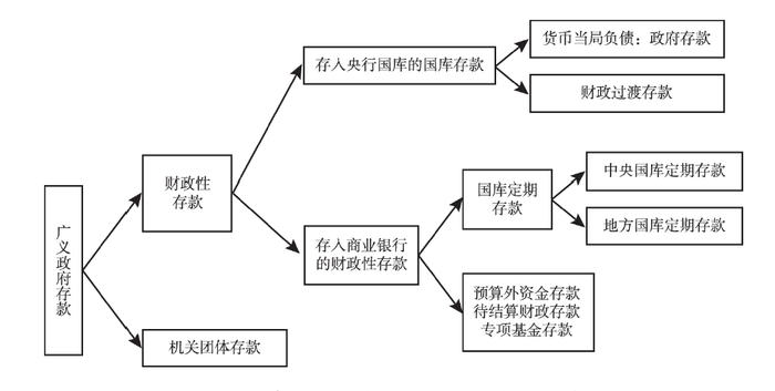 广义财政国库库款=财政性存款=央行政府存款+商业银行财政性存款
