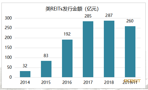 中国类REITs市场发展也是非常的快,目前截止到2019年6月末为止的时候,我们看他的统计数字已经发展到54单,已经超过了1100亿人民币。