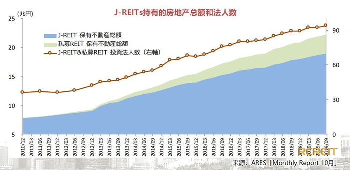 这张图主要是介绍说截止到目前日本的REITs大概是怎样的一个规模和累积。
