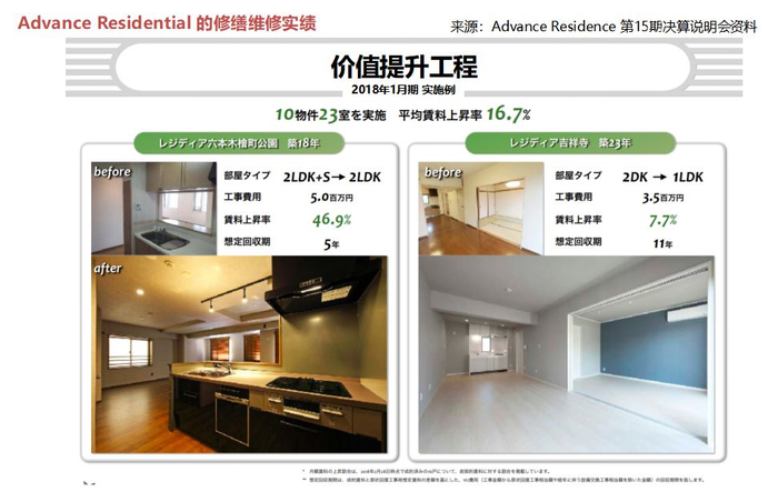成本和它未来做完工程的效果到底有没有好的一个效果,是一个积极效果的话,REITs的投资法人也要对它的投资人有说明的义务,他们在决算说明会的资料当中,也要对它对应屋里的这些措施和效果进行这样的一个分析、比较和说明。
