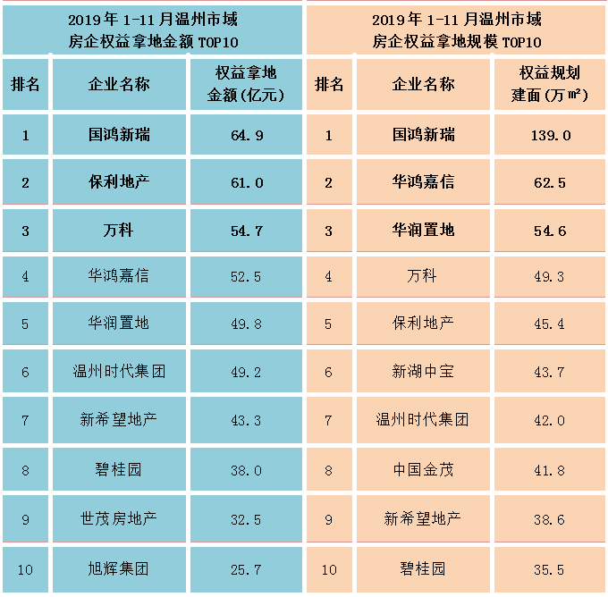 保利首进温州,拿下两块巨无霸高总价地块;以保利、华润为代表的外来房企倾向主城高价地;