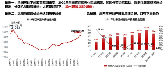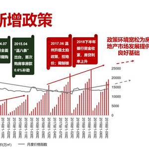 2019年,中央坚持房住不炒、一城一策的主基调,不将房地产作为短期刺激经济的手段,倡导加快建立多主体供给、多渠道保障、租购并举的住房制度。温州本年度并无新增政策,政策环境宽松为房地产市场发展提供良好基础,同时积极推出户籍新政,扩大社保落户的范围,吸引人才流入,短期看提升市场购买需求,长期看提高城市综合实力。