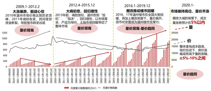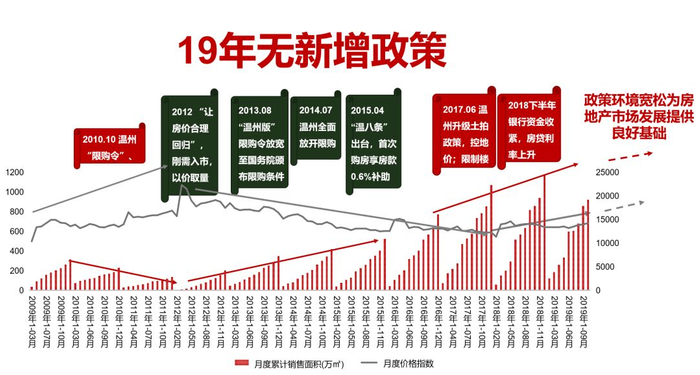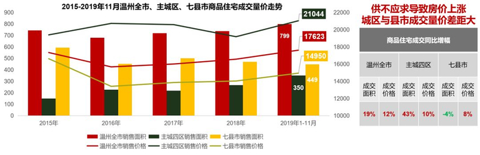2019年,温州市在宽松的政策环境下,住宅市场呈现量价平稳增长态势,供求关系发生逆转;改善型需求成楼市主体,但城区、县市及板块分化日趋明显,企业竞争日趋激烈。