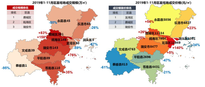 ➤宅地方面以主城鹿城、县市瑞安成交亮眼