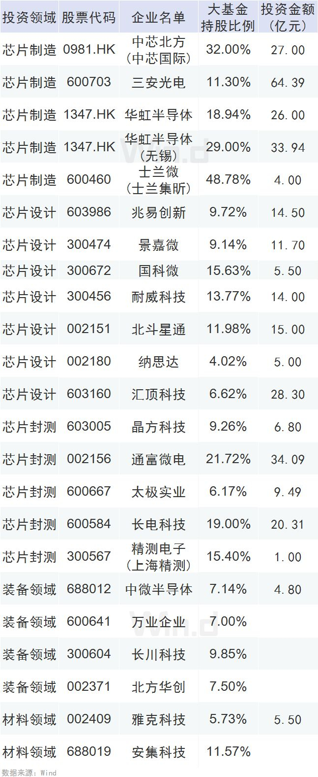 Wind根据公开资料整理,大基金主要投资的重点上市公司如下: