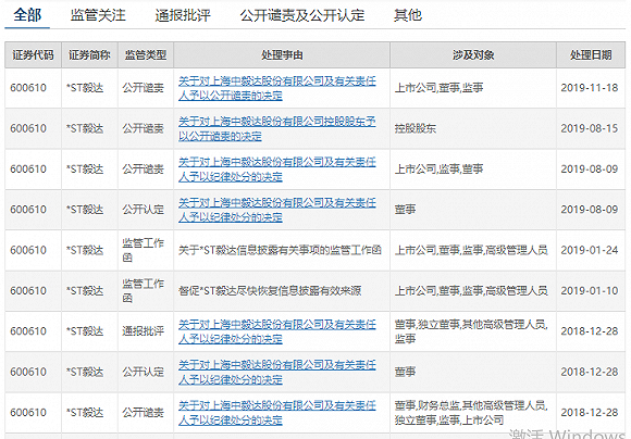 翻开上交所监管措施一栏看到,*ST毅达自去年12月以来,前后上榜9次,公开谴责、通报批评、纪律处分一样没落下,奇葩指数爆表。