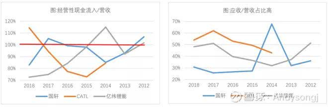 与整车厂相比,动力电池处于弱势地位。动力电池的上市公司应收款项占营业收入的比重高,经营性现金流入不如营业收入,可以看出在产业链中整车厂更强势。