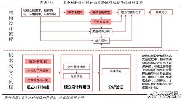 大丝束、小丝束碳纤维有四大相同特质:重资产、高投入、上下 游协同设计,合作关系不易变更。前两点商业模式部分中已经说明, 后两点则是碳纤维行业相对传统材料行业的主要区别。大丝束碳纤维 和小丝束碳纤维都属于复合材料大类,复合材料的最大特征是产品可 设计性强,下游组件的开发难度较高,作为复合材料基体和增强体的 树脂和碳纤维需要有系统的数据支撑,因此处于上游的碳纤维生产商 和处于下游的结构件生产商一般需要协同设计。同时,一旦合作关系 建立,由于产品设计测试流程较长,也不会轻易更换。