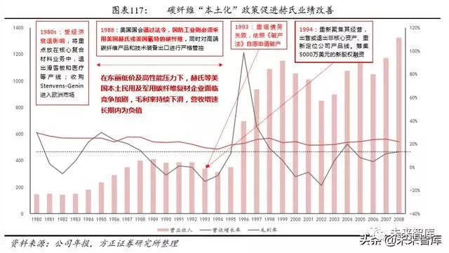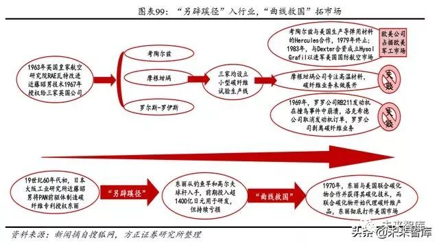 碳纤维行业重资产运营、竞争领域多维、行业标准严苛,公司在 成长初期,必须依靠政策优惠和规范获得资金支持,维持竞争环境暂 时稳定。(1)东丽:日本环保相关政策,推动碳纤维行业发展。日本 政府高度重视高性能 PAN 基碳纤维及能源和环境友好相关技术开发, 在包括“能源基本计划”、“经济成长战略大纲”、“京都议定书”等多项 基本政策中,均将此作为战略项目,并给予人力、经费上的支持;日 本经济产业省提出了“节省能源技术研究开发方案”。( 2)美国:赫氏发展得益于美国国防部制定的碳纤维本土化政策。美国从 20 世纪 70 年代先后赞助执行了飞行能效(Aircraft Energy Efficiency,ACEE)计 划、先进复合材料技术(Advanced Composite Technology,ACT)计划 和低成本复合材料计划等,最终目的在于提供在制造成本上有竞争力 的复合材料机翼和机身的制造技术。公司发展前期主要围绕国防军工 领域,后因军费削减进行整改,退出不盈利的项目,逐步进军商用。上世纪八十年代,美国的几个碳纤维公司均采用外部治理模式,但由 于碳纤维作为国家特殊的战略物资材料,受日本东丽等公司的制约, 美国碳纤维企业均濒临倒闭。美国国防部适时推出碳纤维等关键材料 本土化的国家战略。1988 年,美国国会通过法令:军用碳纤维所用聚 丙烯腈原丝要逐步实现自给,国防工业所需的重要材料都必须立足于 本国生产,波音可以使用日本东丽的碳纤维,国防工业则必须采用赫 氏或美国氰特的碳纤维,同时对高端碳纤维产品和技术装备出口进行严格管控。由此扶持了赫氏、美国氰特等本土碳纤维企业的发展,最 终摆脱了对日本碳纤维的依赖。