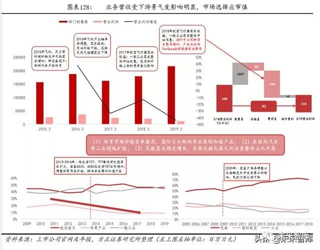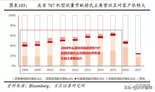 (3)重视绑定下游客户的关键性。赫氏 航空复材对接军/民航飞机制造客户。军航固有的较强抗周期性成为其 实现稳增长的依托之一,民航主要受益 09 年后 B787 的批产放量,二 者构成 09 年至 18 年赫氏实现其基本 EPS 翻五倍的重要推动力。