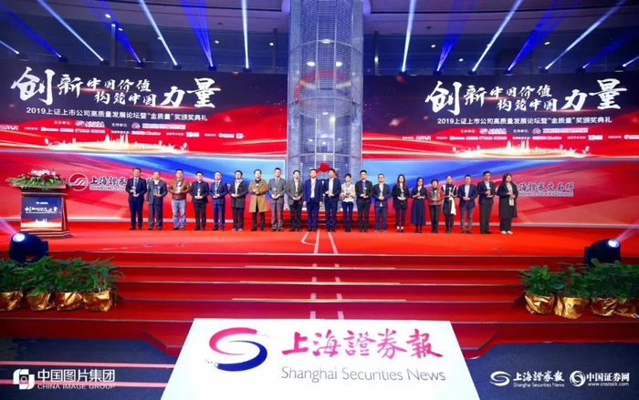 当天,由上海证券报主办、中证中小投资者服务中心支持的“2019上市公司高质量发展论坛”暨“金质量”奖颁奖典礼上,金徽酒作为唯一获奖的酒类上市公司,与中信证券、中国医药等优秀公司一同获颁“金质量·公司治理奖”。