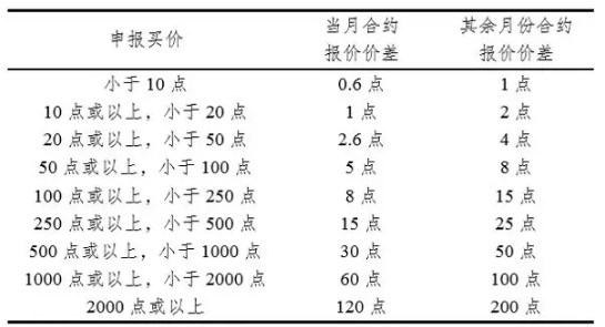 期权合约最优买卖报价价差小于等于下表价差时,不得询价。