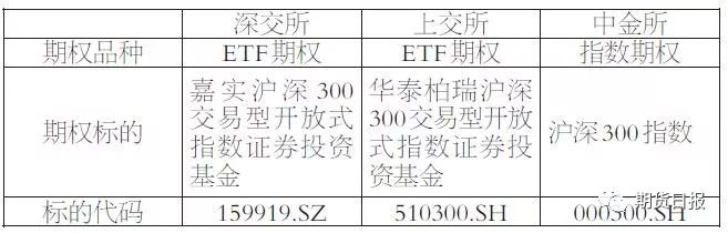 三大金融期权新品种的合约标的不同,具体如下表所示: