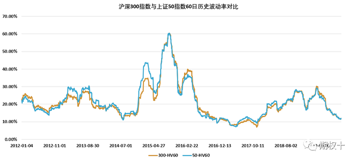 图2.5:沪深300指数与上证50指数60日历史波动率对比