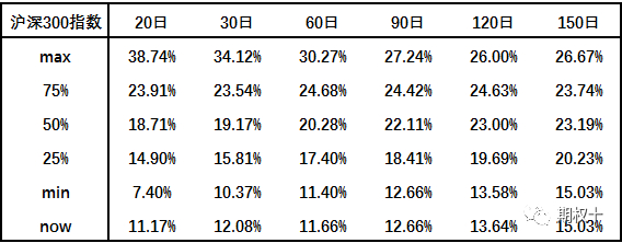表2.1 沪深300指数近两年波动率锥数据