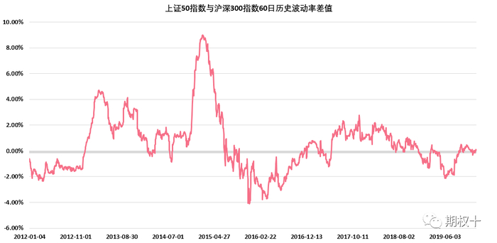 图2.7:上证50指数与沪深300指数60日历史波动率差值