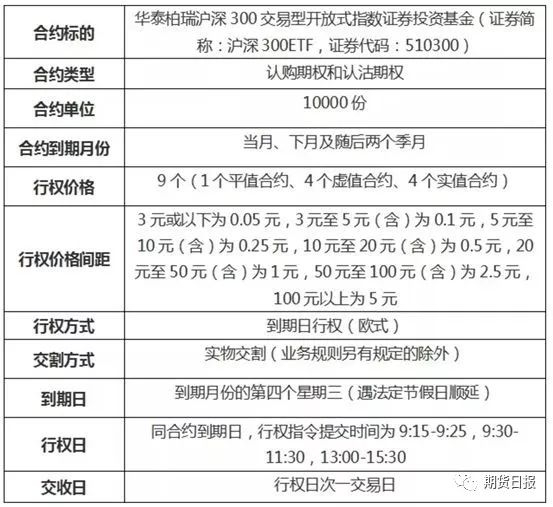 上交所沪深300ETF期权的合约具体情况如下: