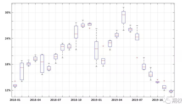 图2.2:30日历史波动率月度箱线图