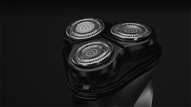 这款剃须刀拥有3组独立的3D浮动刀头,比普通双刀头剃须增加1/3剃须面积。