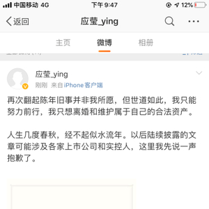 应莹在微博长文中表示,若离婚案继续拖延,将聘请审计人员,对案件过程进行审计,对资产进行自我甄别。其表示,再次翻起陈年旧事并非自己所愿,“但世道如此,我只能努力前行,我只想离婚和维护属于自己的合法资产。”