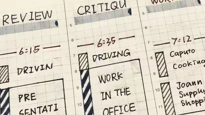 如此一来,就能根据时间轴上的分区,更快找到不同事项对应的计划或总结。倘若计划没有100%实施?那就可以将其划掉,或决定不再做这件事,或将它放到第二天再做。