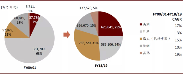 图表: FY00/01~FY18/19大金收入的国际化趋势