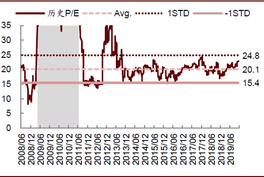 注:计算历史平均P/E区间时剔除了灰色时间段