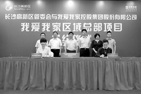 ▲我爱我家控股集团与长沙高新区管委会签署大数据服务中心的合作协议