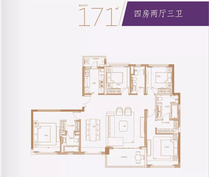 产品方面,先看看建面约171㎡的大平层单位。