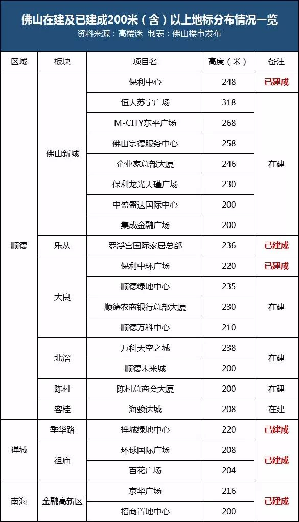 统计,佛山在建及已建成的200米以上高楼共22栋,超1/3分布在东平河南岸的佛山新城。(来源:高楼迷)