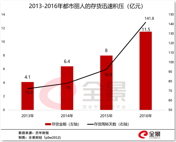 由于对市场需求的激进预判,都市丽人面临着库存、现金流压力。尤其是存货周转天数不停上升,滞销会逐渐累积。