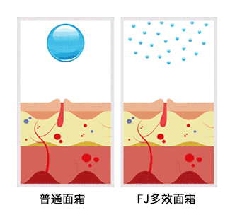 而FJ多效面霜中采用的ACS卵磷脂包裹专利技术,是微脂囊渗透技术中渗透效果较先进的工艺,相当于无创透皮。